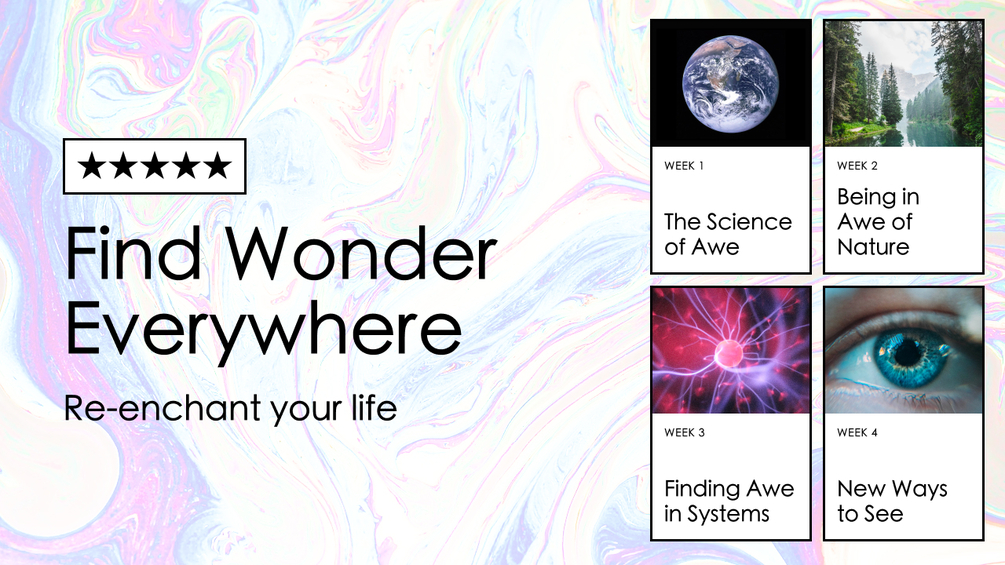 Find Wonder Everywhere is a 4-part course designed to cultivate the skills to live a life full of awe and wonder.